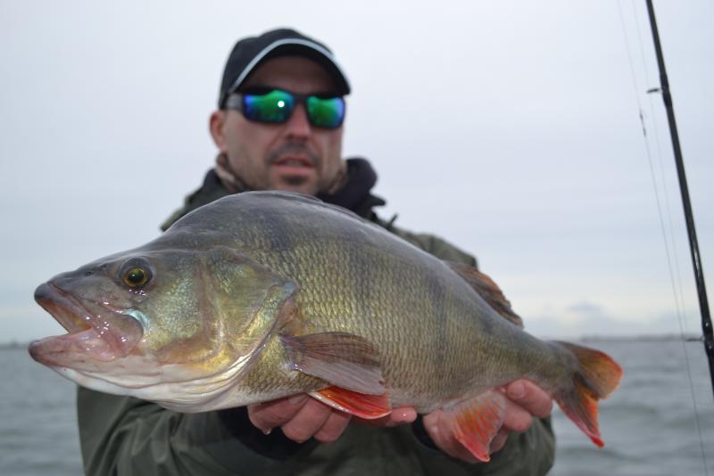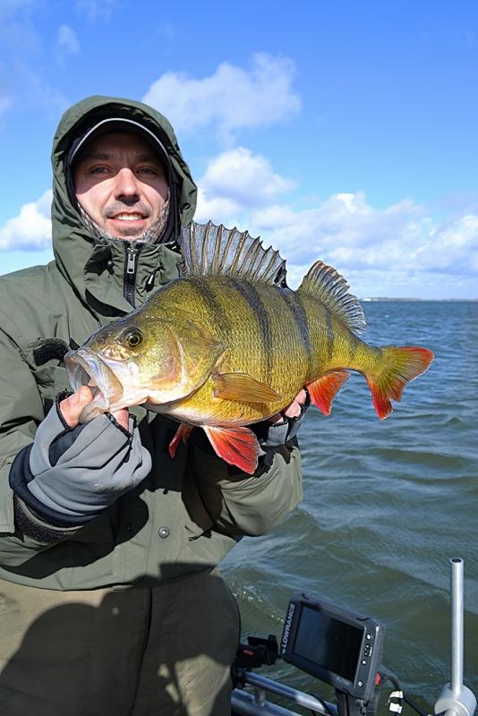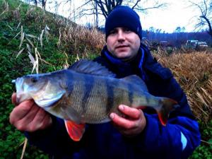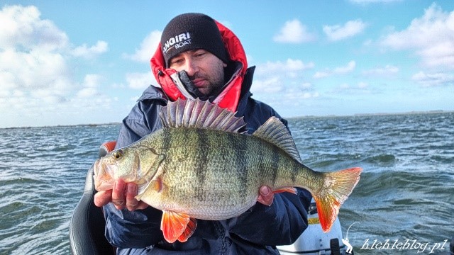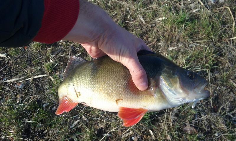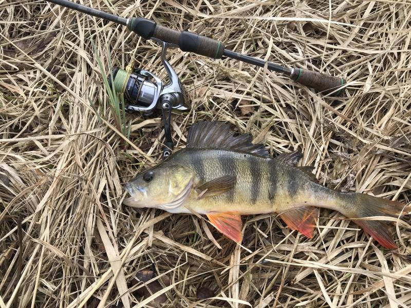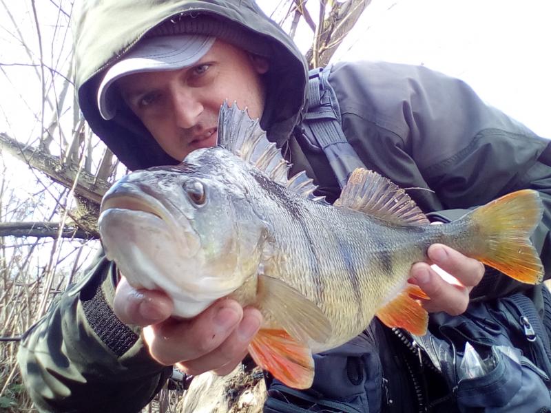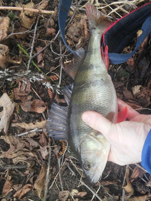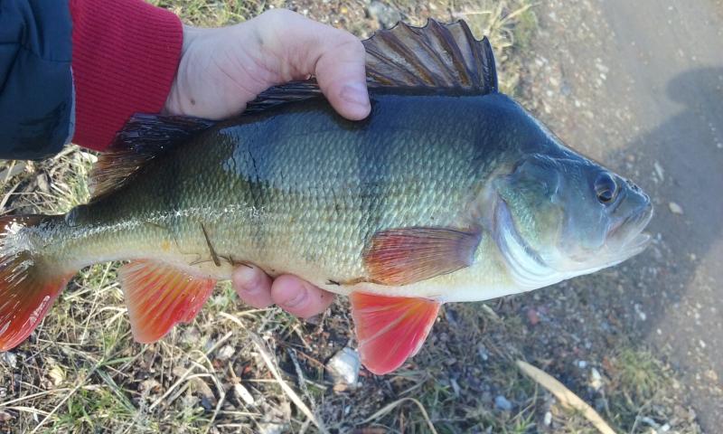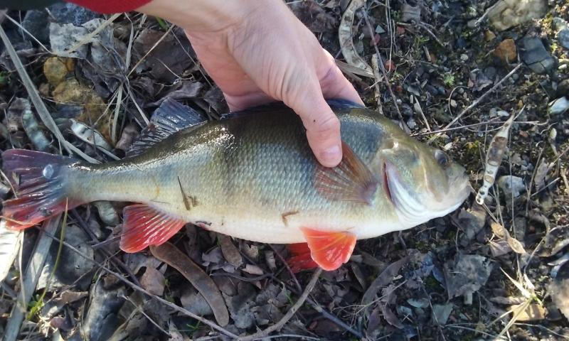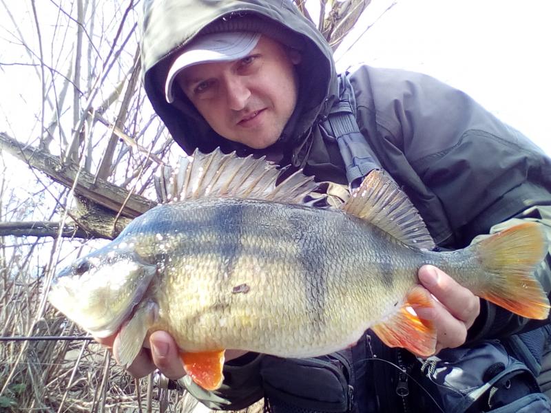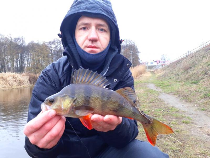 Drugi wyjazd w tym roku. Wiatr mocny, ale dało się wytrzymać. Na cały dwugodzinny wyjazd zameldowały się trzy ryby. Mały okonek, przyłów szczupaczka i ta piękna samica. 35 centymetrów. Kijek do 6g pracował pięknie, po samą rękojeść. Złowiony na 2" raczka w kolorze ciemny róż na czeburaszce 3g.