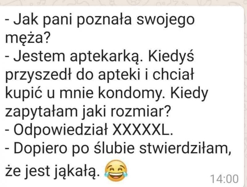 Konstanty Opublikowano 4 Czerwca 2020 Zgłoś Udostępnij Opublikowano 4 Czerwca 2020 mój Kumpel ma żonę, której panieńskie nazwisko to "Niemiec"obecnie nosi nazwisko mężajak się kłócą o coś, i ona go wkurzy mocno...Kumpel wtedy używa wariantu ostatecznego, niektórzy mówią "opcja atomowa"krzyczy wówczas:- o nie! nie będzie Niemiec pluł mi w twarz!;-) 5 Cytuj Odnośnik do komentarza Udostępnij na innych stronach Więcej opcji udostępniania...