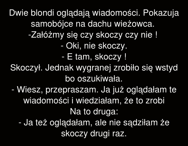 - Kochanie, odpowiada mąż, gdybyś dowiedziała się z iloma, to byś już dawno się ze mną rozwiodła...