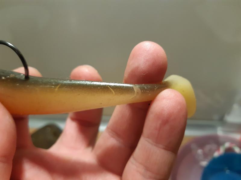 Nie wyrzucać pogryzionych, pokiereszowanych silikonów, kleić do kołnierza i łowić.