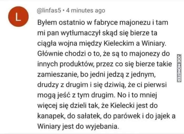 Sirval Opublikowano 2 Listopada 2023 Zgłoś Udostępnij Opublikowano 2 Listopada 2023 Zgadzam się. Kielecki to może do sałatek, ale i to niekoniecznie. Winiary jest zdecydowanie lepszy. Ale z tych seryjnych, to najlepszy Babuni Majonezu Świdnickiego nie jedliście [emoji1787][emoji1787][emoji1787][emoji1787] Wysłane z iPhone za pomocą Tapatalk Pro 2 Cytuj Odnośnik do komentarza Udostępnij na innych stronach Więcej opcji udostępniania...