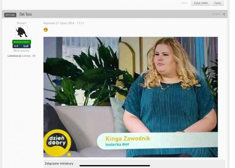 Darek_W Opublikowano 27 Listopada 2024 Zgłoś Udostępnij Opublikowano 27 Listopada 2024 (edytowane) I perełka według mnie Z otyłych osób publicznych możemy się śmiać ? Pozdrawiam serdecznie Panowie i Panie Edytowane 27 Listopada 2024 przez Darek_W 1 Cytuj Odnośnik do komentarza Udostępnij na innych stronach Więcej opcji udostępniania...