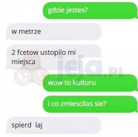 Z.Milewski Opublikowano 17 Lutego 2016 Zgłoś Udostępnij Opublikowano 17 Lutego 2016 Wraca mąż rano do domu-żona pyta się gdzie Ty ku..a byłeś cały wieczór,mąż odpowiada-u kolegi, żona od razu dzwoni do jego pieciu najlepszych kumpli aby go sprawdzić-co się okazuje- u dwóch spał a u pozastałych trzech jeszcze śpi... W przeciwną stronę już tak nie działa. Istnieje jeszcze dalsza część powyższego. Kto znajdzie i opisze ? Cytuj Odnośnik do komentarza Udostępnij na innych stronach Więcej opcji udostępniania...