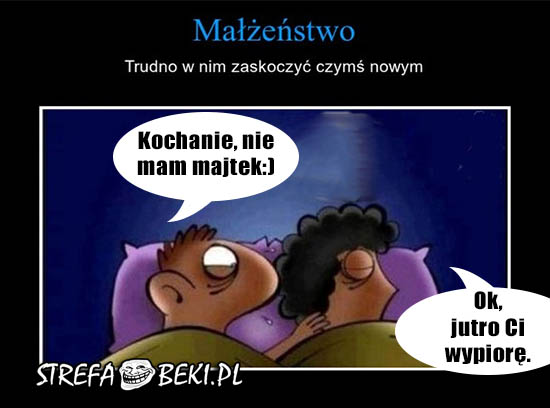 welpa1809 Opublikowano 16 Stycznia 2017 Zgłoś Udostępnij Opublikowano 16 Stycznia 2017 Myślę że przejdzie Na plaży dla nudystów rozmawiają dwa penisy. Jeden śliczny, wypasiony, a drugi jakiś taki szary i pomięty.- Ładnie wyglądasz - mówi ten brzydki.- Wiesz - dumnie odpowiada piękniś - bo ja strzelę jedno ruchanko i potem tydzień odpoczywam.- To masz fajnie, ja dzień w dzień ”rąbię” po pięć, sześć razy. Nie mam, kiedy odpocząć.- To spróbuj się nie podnosić - radzi pierwszy - Słyszałem, że to pomaga.- Gówno tam pomaga - odpowiada ze złością ten ”pracowity” - Kiedyś się nie podniosłem, to mnie kurwa mało nie zjedli! 5 Cytuj Odnośnik do komentarza Udostępnij na innych stronach Więcej opcji udostępniania...