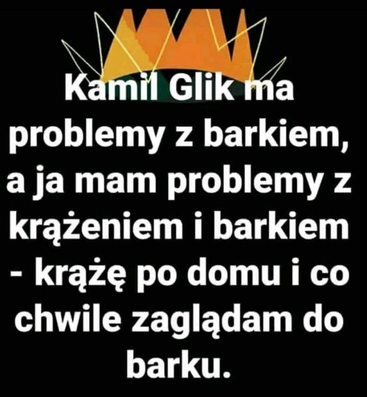 SlawekNikt Opublikowano 23 Czerwca 2018 Zgłoś Udostępnij Opublikowano 23 Czerwca 2018 Ciętych ripost ciąg dalszy Rodzice rozmawiają, że dziecko dorasta itd. ...Syn włącza się w dyskusję i również stwierdza, że fakt dorasta i interesują go już te sprawy Na to matka: no tak Ciebie synu interesują, a innych (mając na myśli męża) już nie ...Ojciec: Interesują, interesują, ale w innym towarzystwie Cytuj Odnośnik do komentarza Udostępnij na innych stronach Więcej opcji udostępniania...