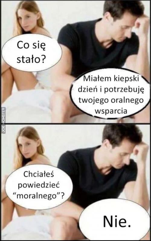 Ugly Opublikowano 22 Sierpnia 2018 Zgłoś Udostępnij Opublikowano 22 Sierpnia 2018 (edytowane) Przypomniał mi sie inny, stary nieco podobny. O tyle lepszy że bardziej prawdopodobny albowiem babcia nie udźwignęła by 50 milionów euro w gotówce Dyrektor wzywa Kowalskiego:- Panie Kowalski ! Zarabia pan niewiele a ma pan duży dom mercedesa itd. Ludzie plotkują. Musze pana spytać skąd ta forsa ?- Z zakładów - odparł Kowalski- Jak to ? Gra pan w totka czy na wyścigach ?- Ależ skąd ! Zakładam się z ludźmi Na przykład czy założy się pan ze mną panie dyrektorze że ugryzę się w oko ? O sto złotych !- Jak to przecież to niemożliwe - no dobrze - załóżmy sięKowalski wyją sztuczne oko i ugryzł się Dyrektor dał stówę i zły na siebie ostro powiada- Panie ilu ludzi by musiał pan tak nabrać. Mnie pan na plewy nie weźmie ! Skąd ta forsa u pana - Przecież mówię: z zakładów załóżmy się o 500 że ugryzę się w drugie oko- No dobrze - założyli sięKowalski wyją protezy zębowe i ugryzł się w drugie okoWściekły dyrektor wypłacił i nadal nalega- Panie po tygodniu wszyscy w mieście by już o tym wiedzieli.Buja mnie pan. Skąd naprawdę ma pan forsę ?- Panie dyrektorze słowo daję że z zakładów - nasikam do szklanki i zmienię to w szampan - o tysiaka !Założyli się Kowalski nasikał .dyrektor próbuje- Kowalski ! To mocz nie żaden szampan - wrzeszczy aż śiciany sie trzęsą- Faktycznie tym razem przegrałem rzecze Kowalski. Oto 1000 złotych dla panaNieco udobruchany odzyskaną forsą i jeszcze paroma stówkami dyrektor dobrotliwe- No dobrze, nikomu nie powiem ale niech mi pan panie Kowalski powie prawdę- Dyć mówię że z zakładów. W sekretariacie czeka 20 osób. Z każdym założyłem się o 5000 że pan będzie pił mój mocz Edytowane 22 Sierpnia 2018 przez Marcin Rafalski 5 Cytuj Odnośnik do komentarza Udostępnij na innych stronach Więcej opcji udostępniania...