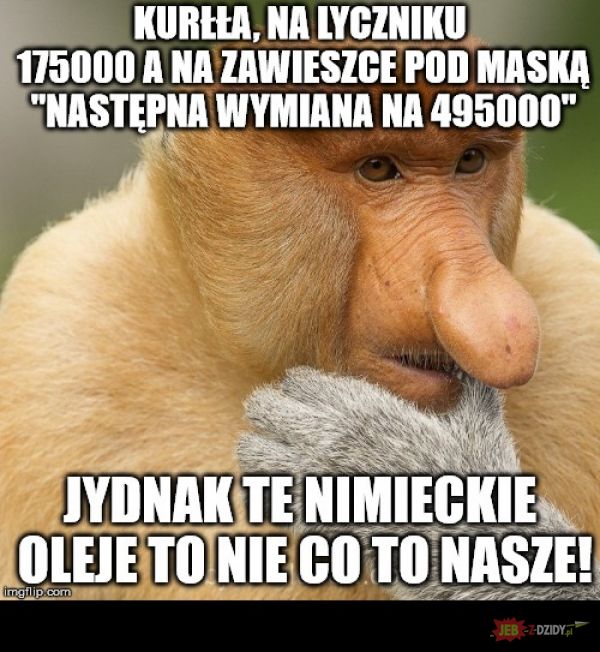 domeldoom Opublikowano 9 Listopada 2018 Zgłoś Udostępnij Opublikowano 9 Listopada 2018 Był sobie fanatyk wędkowania.Pewnego dnia dowiedział się o fantastycznym wprost miejscu, małymjeziorku w lesie, gdzie ryby o wielkości niesamowitej same wskakują na haczyk.Nie mógł się już doczekać weekendu.Gdy minął ciężki tydzień i nastał dzień wyjazdu, wstał o 4 rano, aby wyruszyć w drogę.Po długiej podróży odnalazł małe jeziorko w lesie, rozstawił wędki i czekał godzinę, drugą godzinę, trzecią.Wreszcie spławik drgnął, a wędkarz szarpnął i wyciągnął ogromne nadziane na haczyk gówno.Zaklął szpetnie i zauważył, że z tyłu ktoś za nim stoi. Był to miejscowy.Wędkarz z żalem powiedział:- No patrz pan, taki kawał drogi jechałem, tyle wysiłku, kombinowania i co?! Gówno!Na to gościu:- A bo wie pan, z tym jeziorkiem związana jest pewna legenda. Otóż niech pan sobie wyobrazi,że przed I wojną światową żył tu chłopak i piękna dziewczyna, którzy kochali się niesamowicie,ale wzięli go do wojska. Po jakimś czasie nadeszła wiadomość że zginął na froncie i proszę sobiewyobrazić, że ona przyszła tu, nad to jeziorko i z wielkiego żalu się utopiła!- Niesamowite - odparł wędkarz.- Ale to jeszcze nie koniec proszę pana! Otóż po wojnie okazało się, że chłopak przeżył, był tylkoranny. Gdy przyjechał i dowiedział się o wszystkim, przyszedł tu, w to miejsce na którym pansiedzi i z żalu i wielkiej miłości również się utopił!- To szokująca historia - powiedział wędkarz - ale co z tym gównem?- A to nie wiem. Widocznie ktoś nasrał. 9 Cytuj Odnośnik do komentarza Udostępnij na innych stronach Więcej opcji udostępniania...