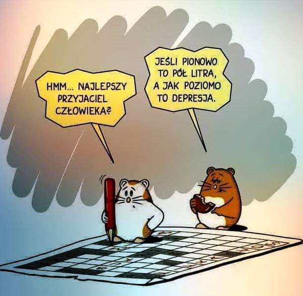Gromadzki Opublikowano 14 Marca 2019 Zgłoś Udostępnij Opublikowano 14 Marca 2019 Pewnego razu niewidomy postanowił odwiedzić Teksas. Wsiada do samolotu teksaskich linii lotniczych i zapada się w miękkim, dużym fotelu.- Hej... - mówi niewidomy - ale duży fotel.- W Teksasie wszystko jest większe, niż gdzie indziej - mówi siedzący obok pasażer.Kiedy niewidomy wylądował w Teksasie, pierwsze kroki skierował do baru.Dostał kufel, bada go dłońmi i mówi z podziwem:- Ale duże kufle tu macie.- W Teksasie wszystko jest większe niż gdzie indziej - mówi barman.Po kilku piwach niewidomy pyta barmana, gdzie jest toaleta.- Na drugim piętrze, trzecie drzwi po prawej - pada odpowiedź.Niewidomy idzie, ale gubi drogę i zamiast do toalety, wchodzi do sali z basenem. Potyka się, wpada do wody i przerażony krzyczy:- Nie spłukiwać! Nie spłukiwać!. 7 Cytuj Odnośnik do komentarza Udostępnij na innych stronach Więcej opcji udostępniania...