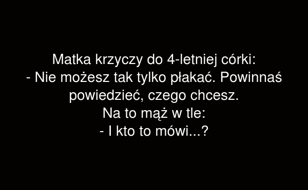 anpart Opublikowano 5 Marca 2020 Zgłoś Udostępnij Opublikowano 5 Marca 2020 (edytowane) Dzisiaj dzień teściowej Wraca mąż ze szpitala gdzie odwiedzał ciężko chorą teściową i zły jak nieszczęście mówi do żony:- Twoja matka jest zdrowa jak koń, niedługo wyjdzie ze szpitala i zamieszka z nami.- Nie rozumiem - mówi żona - wczoraj lekarz powiedział mi, że mama jest umierająca!- Nie wiem co on tobie powiedział ale mnie, kur*a radził przygotować się na najgorsze. Dwie kobiety przyszły do króla Salomona i przywlekły za sobą młodego człowieka.- Ten młody człowiek zgodził się ożenić z moja córką! - powiedziała jedna.- Nie! Zgodził się ożenić z moją córką! - zakrzyknęła druga.I zaczęły się kłócić, aż król Salomon poprosił o ciszę.- Przynieść mi największy miecz - powiedział - Trzeba przeciąć go na pół. Każda z was dostanie po połowie!- Brzmi nieźle - powiedziała pierwsza kobieta.Druga na to:- O, panie, nie przelewaj niewinnej krwi. Niech inna kobieta go poślubi.Mądry król nie wahał się ani chwili:- Facet musi poślubić córkę pierwszej kobiety - zawyrokował.- Ale ona chciała przeciąć go na dwie części! - wykrzyknął dwór króla.- Właśnie dlatego widać - powiedział mądry król Salomon - że to jest prawdziwa teściowa! - No, takiego koronawirusa to ja jeszcze nie miałem! - rzekł zięć informatyk, widząc teściową przy swoim komputerze... Leży teściowa na łożu śmierci, stan agonalny, oczy w słup itd. Przy łóżku siedzi równie skupiony zięć i wpatruje się w teściową. Nagle do pokoju wpada mucha i zaczyna latać z kąta w kąt, a teściowa oczami za muchą wodzi - mucha w lewo, ona oczami w lewo, mucha w prawo,ona oczami w prawo i tak cały czas. Nagle mocno poirytowany tą sytuacją zięć krzyczy:- Się mamusia nie rozprasza! Edytowane 5 Marca 2020 przez anpart 8 Cytuj Odnośnik do komentarza Udostępnij na innych stronach Więcej opcji udostępniania...