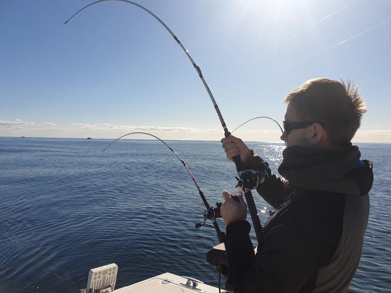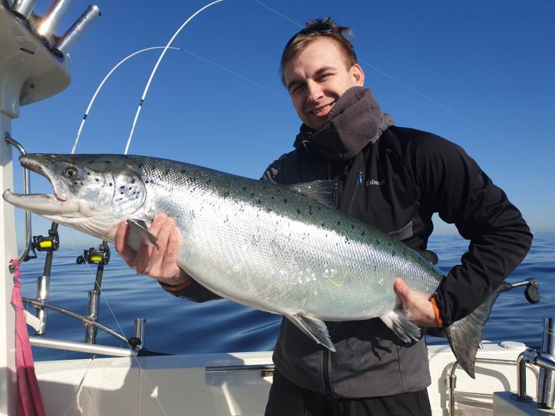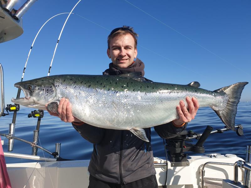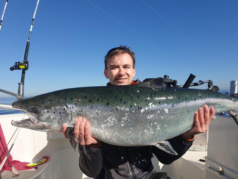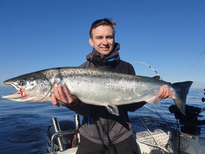korol Opublikowano 5 Kwietnia 2019 Zgłoś Udostępnij Opublikowano 5 Kwietnia 2019 (edytowane) ŁososieW tym roku sezon rozpocząłem niezwykle późno. W prima aprilis, pierwszego kwietnia. Ponad trzytygodniowa choroba dzieci, nocki w Bielańskim oraz burzliwa epoka walczących królestw w pracy sprawiły, że na chwilę zapomniałem o pasji i skupiłem się na bardzo szarej codzienności.Z uwagi na powyższe odpuściłem zagranice (a takie miałem zamiary..) i zrealizowałem plan B, a może C, czyli nasze Bałtyckie Sreberka. Zaczęło się od rozmowy z ojcem na temat słowa pisanego (i mojego w tym udziału), a skończyło na umówieniu się z synem z klanu wędkarskich maniaków.Z domu wyjechałem koło 18.00, jeszcze tylko tankowanie i w drogę. Najpierw trasa na Łódź, potem na Gdańsk. Kolejne doładowanie baku na stacji paliw i jestem na Półwyspie Helskim. Sprawnie omijam w ciemnościach jeża, potem kota, hamuję przed sarną. Koło 23.00 jestem w Helu i melduję się w hotelu, o niskim standardzie, ale za to położonym blisko portu, będę mógł tam chodzić na piechotę.Budzik miałem ustawiony na 4.50, nie zadzwonił. Jakaś aktualizacja oprogramowania i restart telefonu zatrzymany na wpisaniu hasła. Dodatkowo, zmiana czasu – godzina do przodu. Na szczęście obudziłem się bez budzika o 5.35. Nie wiem jakim cudem, ale jakoś tak wyszło. Zdążę!!! Przed 6.00 spotykam się z Szymonem w porcie. Szybkie przywitanie i ruszamy w drogę. Już przy rozkładaniu zestawów dostrzegam pozytywnego wędkarza, jednocześnie metodycznego do bólu. Lubię takie dokładnie przemyślane łowienie. Żadnych przypadków, tylko trzymanie się zwycięskiej strategii. Pogoda dopisuje, niebieskie niebo, bardzo delikatna fala, dość ciepło. Super. Choroby morskiej brak. Rozpoczynam od śniadania. Zgodnie z harmonogramem brania będą za 2 godziny. Jak fajnie, że nie mam zasięgu, nikt nie zadzwoni z pracy, zresztą mówiłem, by nie dzwonili.. Pierwszy łosoś wziął punktualnie, kilka minut po godzinie 9.00 wg starego czasu. Uderzenie i odjazd. Skubaniec wpłynął w windę plącząc 3 dodatkowe wędki. Ot, taki primaaprilisowy psikus. Na szczęście udało się sprawnie uwolnić pozostałe zestawy, a rybę podebrać ręką. Piękny samiec, 104cm. Mój pierwszy i w tym momencie naturalnie największy. Szybkie zdjęcia i ryba wraca do wody. Kolejny zrobił to samo, tyle, że z dwoma innymi wędkami. Podobno taka seria jest niemal niespotykana. Ryba duża, silna. Już zaraz po braniu wiedziałem z kim mam do czynienia. Jakież robiła wrażenie płynąc obok łódki, niemal zastygając majestatycznie pod powierzchnią i pięknie mieniąc się w słońcu. W tym przypadku nie było ryzykowania. Trafiła do podbieraka, za drugim razem, zaraz po wyskoku przy pierwszej próbie podebrania. Kolejny samiec miał bite 113cm, dokładnie 113,5. Przy wypuszczaniu zakręcił się przy powierzchni, ale na szczęście zanurkował. Tego dnia złowiliśmy jeszcze 5 ryb. Odhaczaliśmy je przy łódce. Dwie w granicach metra (jedna powyżej, drugo lekko poniżej). Dwie około 90cm (bardziej 90+) i jedną z 85cm. Tej ostatniej nie zdążyliśmy wypuścić, bo sama po zluzowaniu wpłynęła w inny zestaw i się spięła. Mądra, wiedziała, że niebezpiecznie się tak nachylać.Dwie wygrały podczas holu. Żałuję tej pierwszej, niezwykle silnej, potężnej. Chyba największej ze wszystkich. Rozpoczęła niepohamowanym pomimo mocno dokręconego hamulca długim odjazdem zakończonym widowiskowym wyskokiem i spinką. Druga więzła mi z ręki , jak mieliśmy już zwijać zestawy i wracać do portu. Spadła po długim holu w końcowej jego fazie, nie pokazała się do końca. Pewnie metr bite. W tym momencie 3 ryby pochwyciły zestawy na raz i wszystko nonszalancko zepsuliśmy. Cóż dodać…Drugiego dnia dalej było słonecznie, ale za to konkretnie już bujało. Więcej łódek nie widzieliśmy. Zabrakło szaleńców. Już przy wypływaniu z portu pojawiło się w radiu pytanie o znajomość prognozy pogody Cóż mogę dodać, to na pewno tylko standardowa procedura. Dodatkowo, co chwilę było słychać o zamkniętym sektorze, chyba A1 z powodów ćwiczeń wojskowych. Żartowałem, że nas niezwłocznie zatopią. Okazało się, że dobrze znoszę fale. Od dziecka miałem chorobę lokomocyjną. Do dziś muszę siedzieć z przodu samochodu i cierpię w autobusie. Ale nie na wodzie, nie na rybach. Tutaj wpadam w amok i nic się nie liczy, nic nie przeszkadza. Spokojnie jem śniadanie wpatrując się w szczytówki i podtrzymując się druga ręką by nie zlecieć z siedzenia. Trochę trudniej na pokładzie, jeszcze nie przyzwyczaiłem się do takich przechyłów, ale luz, do zniesienia. Spać też mogę, tak jakoś błogo. Aby tylko nie spaść z posłania na większej długiej fali. Właśnie z takiego stanu wyrwała mnie terkotka. To fajne uczucie, przywołujące wspomnienia z nocnego karpiowania, albo sumowania. Ze swoistego letargu na granicy snu budzi mnie znajomy odgłos. Wpół przytomny wyskakuje na pokład przyjmując silny powiew, może podmuch przepełniony słoną morską wodą. Cuci mnie to momentalnie. Zataczając się po bujającej się łodzi łapię za wędkę i rozpoczynam hol. Ryba robi półkole na jakichś 130 metrach. Jest bardzo silna. Sam nie wiem, czy więcej skupienia wkładam w przedłużający się hol, czy w utrzymanie się nogach. Niedowierzamy, że jest tak wytrzymała - piękna, mocarna, wrzecionowata samiczka, 105cm. Po długiej walce ląduje na pokładzie. To jedyna ryba, którą zabraliśmy, dlatego nie zamieszczam zdjęcia. Musicie uwierzyć, że ładna. Więcej brań, mimo usilnych starań już nie było. Zabrakło też fajnych zapisów na echu. Wschodni wiatr zabrał apetyt rybom, zresztą jak mówi historia z tamtego kierunku to nie uświadczy się niczego dobrego.Powrót był przyjemny. Mocno odpocząłem na tych rybach i odespałem trudy ostatnich tygodni. Podwioz
