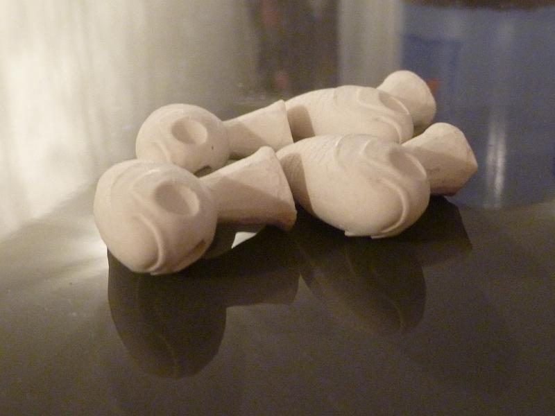 W małych woblerach będą wkręty.Wygodniej z obciążeniem itd.Pampuszek może dostanie grzechotkę[dużo małych kulek w kapsule].Ta masa jest bardzo mocna i wkręty trzymają okrutnie na odpowiednim kleju.Woblery pod Tajmienia,Głowacicę-tu już stelaż w całości.Długość konstrukcji 15-16cm łamane 3elementowe.Tu taki wzorek.