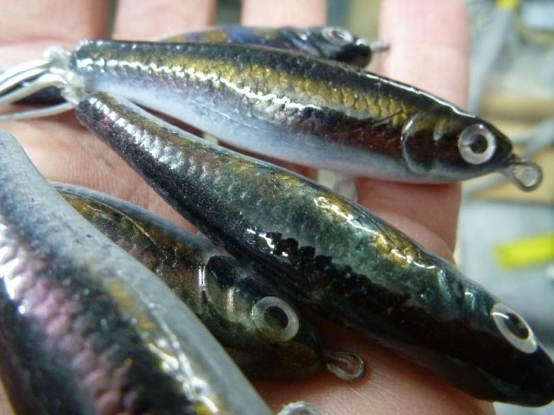 Tomy Opublikowano 1 Września 2013 Autor Zgłoś Udostępnij Opublikowano 1 Września 2013 Wieści z pracowni.Raptory8 BS taka gromadka w trakcie.Nowa forma już na ukończeniu i całą jesień będę "katował" tą konstrukcją w wersji L.C. Strzebelki-bezsterowce 6,5cm waga ok.10-11g.Kleni to jestem raczej pewny a przetestowane zostaną również na pstrągach.Tym w każdy dołek można "zagladnąć." W opadzie mocne lusterkowanie.Ściąganie z krótkimi podbiciami z przerwami na opad.Długi opad szczególnie na Kleniach się sprawdza i kulanie na trupa po dnie z lekkimi podbiciami.Ten ostatni patent raczej na łowiska bez zaczepowe.To jest wersja robiona na szybko.Te właściwe dostaną bardzo drobną fakturę łuski i nie tylko.Będą wyglądać jak żywe 3 Cytuj Odnośnik do komentarza Udostępnij na innych stronach Więcej opcji udostępniania...