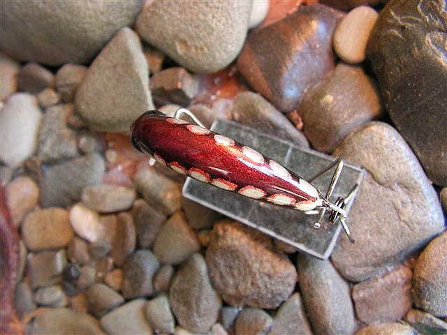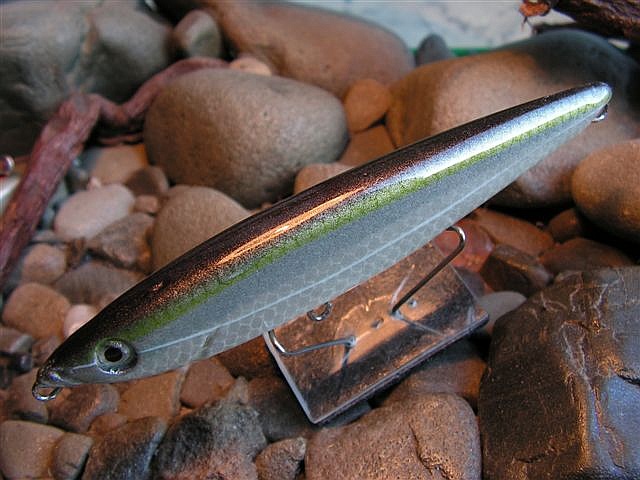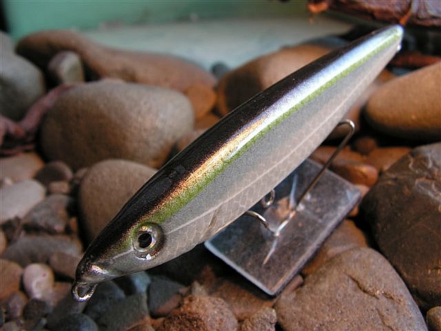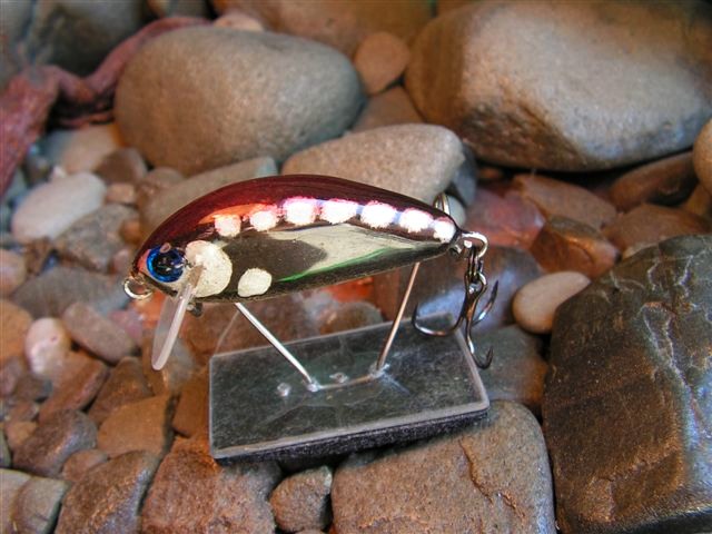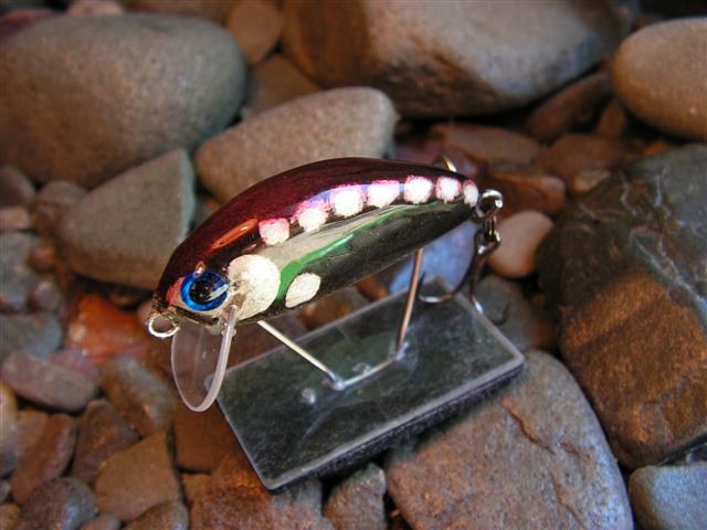 Raptor 6cm 8g jeden z wzorków który zostaje na stałe.Co nie co zmienione.Wobek na średnie dystanse,bardzo dobrze sprawdza się np. w warkoczu w szybkim nurcie.Pracę łapie już przy wolnym prowadzeniu i jest ona niezmienną jeśli chodzi o charakterystykę niezależnie od jego tempa.Powtarzalność wzoru 99%,materiał drewno,drut nierdzewny 1mm,ster poliwęglan 1mm.
