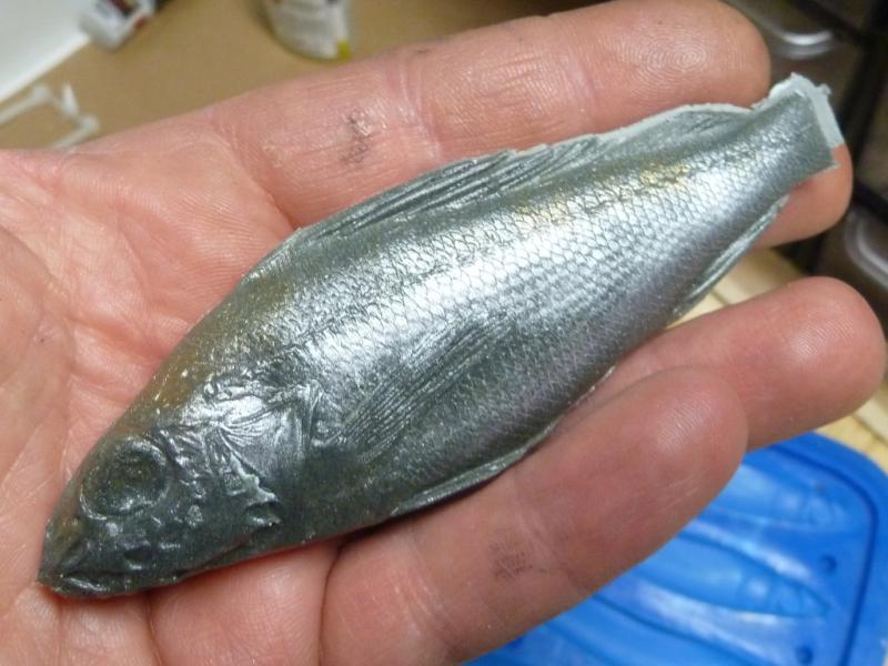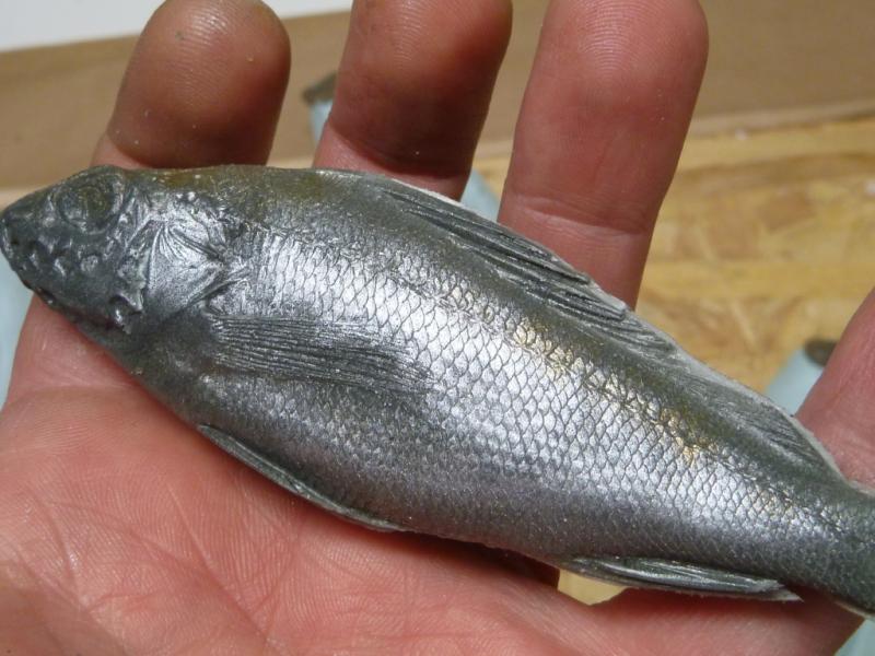 Rzeźba to rzeźba.Odlew też mi dał po nerwach i czasowo.Ważne że jest krok do przodu.Niedługo wezmę się za replikę ryby.Może Sandacza[można kupić] może pstrąga.Tak to sobie wyobrażam.Jako podstawy użyć grubej płyty metakrylanowej,pokryć to kamieniami z rzeki+jakiś korzeń,Wszystko to scalić klejem typu clear ,główne expo-ryba i zależnie np. przy Sandaczu czy Okoniu jakieś małe ryby,rak pręgowany przy korzeniu itp.