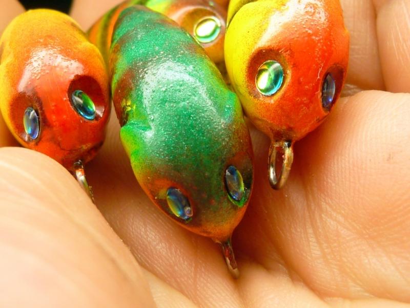 Jest jeszcze jedna fajna przynęta którą chcę robić.Główka jigowa pływajaca kształ trochę podobny do poppera.Na to zapinało się gumę z twardego  silikonu[imitację ryby,żaby itp].Hak był skierowany do góry.Niesamowicie do tego wychodziły.Bardzo wysoka skuteczność zacięć a przy tym niska czepliwość.Można było tym grać między grążelami.