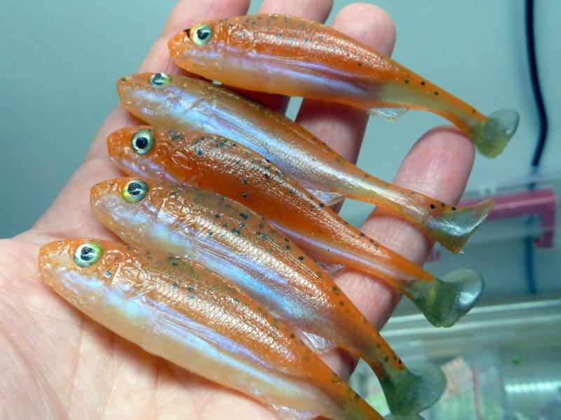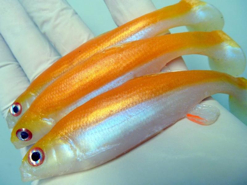 Mam te gumy i potwierdzam że są bardzo łowne, nazwane były zdaje się "Złota Orfa", mam też w barwach uklei i oliwkowe z pomarańczowym tylko kopytem, szczupaki je uwielbiają, tyle że większość maluchów i średniaków w to bije, może nie mam szczęścia do większych zębatych.