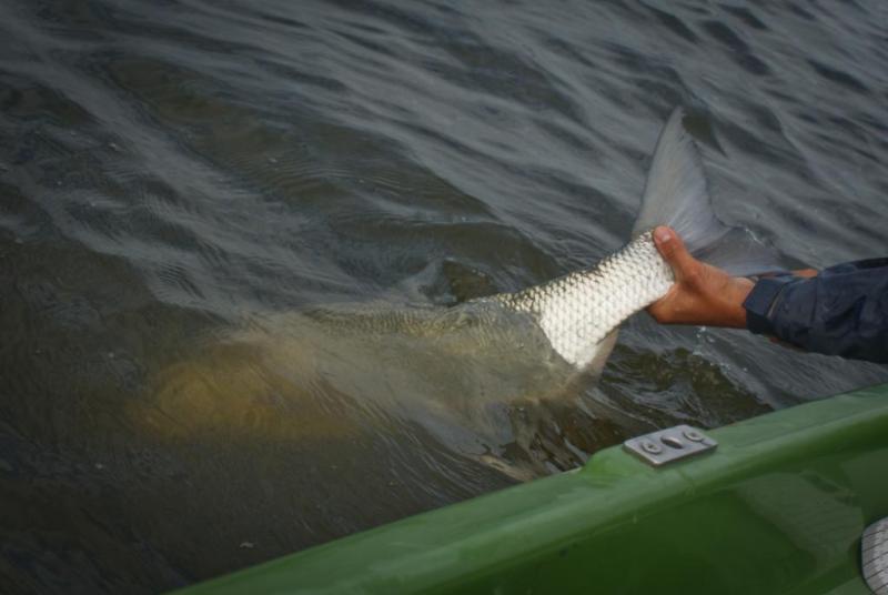 Ta odpowiedź cieszy się zainteresowaniem. Piotr Gołąb Opublikowano 6 Września 2019 Ta odpowiedź cieszy się zainteresowaniem. Zgłoś Udostępnij Opublikowano 6 Września 2019 Ech, żeby tylko takie problemy jak kolor płetw nas prześladowały było by pięknie Dzisiaj przez dwie godziny na wodzie totalna anemia, czasem tylko delikatny wirek zdradził jakiegoś bolka. W końcu poczciwa sterówka własnej produkcji przynosi potężny strzał, boleń idzie jak po sznurku za to przy łódce nurkuje do dna, krążąc wściekle nie pozwala się przez dłuższą chwilę podnieść do powierzchni. Po kilku solidnych kotłach ląduje w podbieraku.Nie tak gruby jak ostatnie ale za to całe 82 centymetry silnego srebra 51 Cytuj Odnośnik do komentarza Udostępnij na innych stronach Więcej opcji udostępniania...