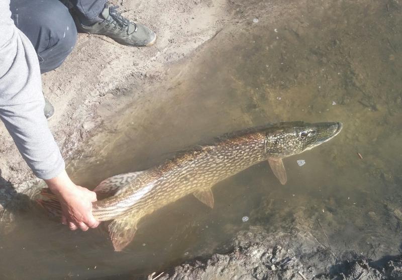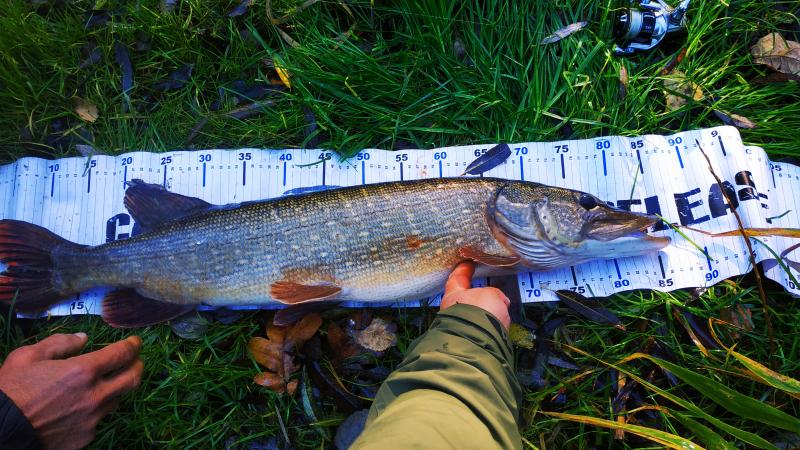 Wprawdzie nie taki okaz jak inne w tym wątku, bo jedynie blisko 80 cm, ale to przyłów przy okoniach, więc na delikatnym sprzęcie chodził jak torpeda, nawet wykonał jedną świecę nad wodą.