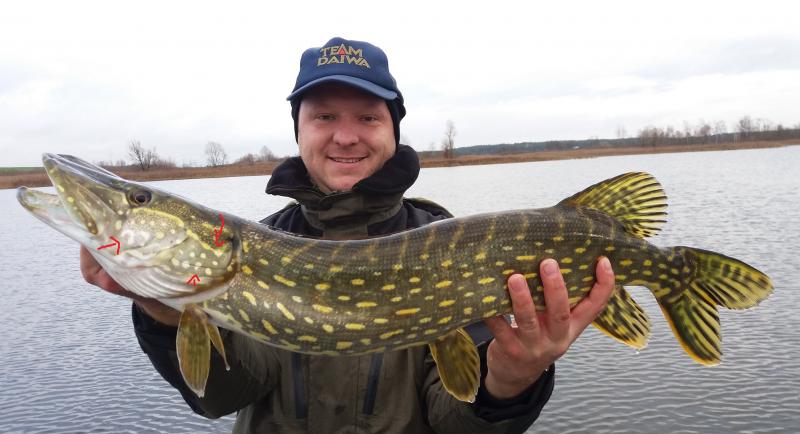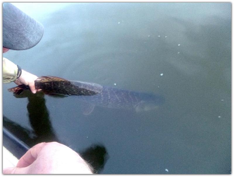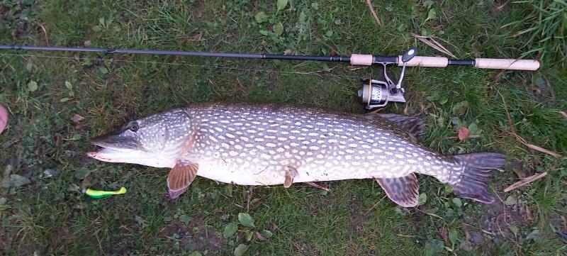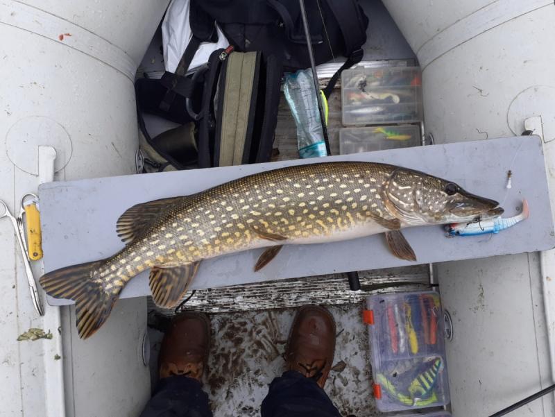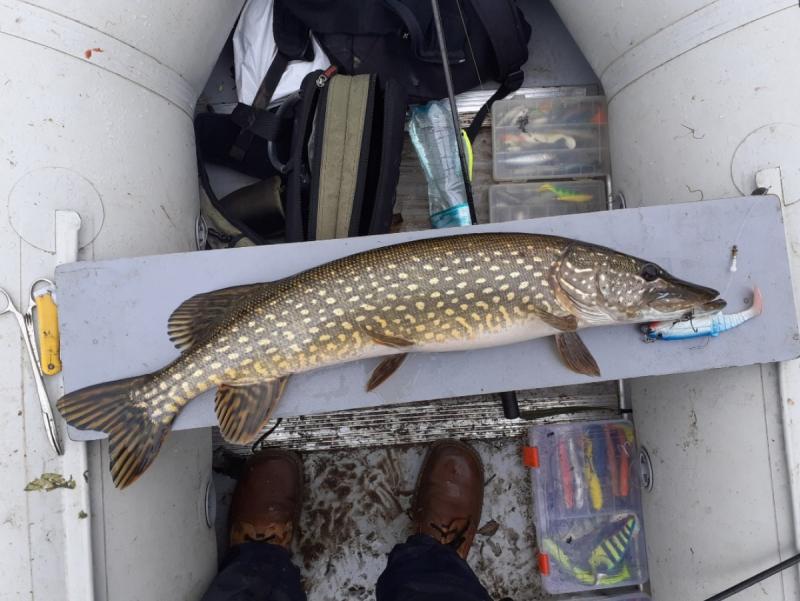 Ryba 108cm, przegruba- zdjęcie nie do końca to oddaje. "Trafiona" przy szukaniu dużych okoni/średnich sandaczy :) W zatoczce, na głębokości 3 metrów, wzięła 4-calowego keitecha na 10g główce. Szczęśliwie wytrzymał najbardziej nieszczupakowy element zestawu- przypon z fluo 0,3mm, chociaż kilkukrotnie przeskakiwał po jej zębach, co dobrze było słychać na łodzi. Po dwóch-trzech minutach holu była przy łodzi, już myślałem że łatwo poszło, a ona zrobiła sobie odjazd na "na jednym wdechu", na jakieś 20m. Po tym już spoko, dobrze że miałem duży podbierak. Kijek NFC MB706 hm, sustain 4000, plecionka daiwa tournament 14lb. Tyle :) Pozdrawiam.