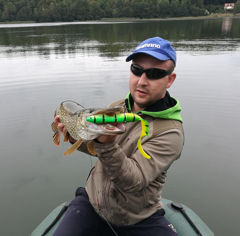 Ta odpowiedź cieszy się zainteresowaniem. jbk Opublikowano 1 Września 2019 Ta odpowiedź cieszy się zainteresowaniem. Zgłoś Udostępnij Opublikowano 1 Września 2019 (edytowane) W tym roku dostałem urlop na cały sierpień. Cały miesiąc na Mazurach :-) Plan był taki aby łowić na muchę bo to ostatnio moja ulubiona metoda. Jednak nic z tego nie wyszło , łowisko na którym miałem łowić w tym roku miało bardzo brudna wodę. No cóż trzeba przeprosić się z castem. Pierwsze dwa dni obławiam pas trzcin po nawietrzenej , zawietrznej , inne miejscówki które mi dawały w latach poprzednich ryby. Bez brania, nawet stuknięcia czy odprowadzenia. No cóż trzeba zmienić łowisko. Woda czystsza , sporo brań ale ryby małe. Wracam na poprzednie łowisko. Znam je dość dobrze , łowię na nim kilka letnich sezonów a dwa lata temu robiąc mapę do echosondy przez trzy dni po przynajmniej 8 godzin dziennie wpatrywałem się w ekran odkrywając sekrety łowiska. W tym roku bez echa ale z obrazem tego co pod wodą w głowię zmieniam taktykę łowienia . Postanawiam się skupić na jednej z górek podwodnych , która jest przeważnie wolna i dała mi dwa lata temu PB wynoszące 118 cm. Górkę odwiedzam kilka razy dziennie licząc na branie dużych ryb które muszą ją odwiedzać i żerować na drobnicy i okoniach. Łowię na mcpike 21 cm z poprowadzonym zbrojeniem górą aby nie czepiać rogatka który porasta szczyt górki. Brań jest bardzo mało ale na kilkanaście wypadów udało się coś złowić 90cm 104 cm 108 cm i 119 cm które jest moim obecnym PB. Ryba ma obtarcia po obu stronach ciała , wygląda jakby się uwolniła z sieci. Budową ciała przypominała mi złowioną dwa lata temu 118cm. Po porównaniu zdjęć obu ryb leżących na macie jestem pewien że to ta sama ryba. Wzięła nawet na tą samą gumę , o tej samej porze dnia tylko po drugiej stronie górki. Sprzętowo : kij na blanku St.Croix 4c710hf , multik abu orra 2 winch , plecionka 8 splotowa p-line 0.26mm, przypon FC 0,9 mm. Przynęta mcpike 21 cm , każda ryba na inny kolor NOMINACJA DO KONKURSU "OPIS MIESIĄCA" Edytowane 1 Września 2019 przez bartsiedlce 84 Cytuj Odnośnik do komentarza Udostępnij na innych stronach Więcej opcji udostępniania...