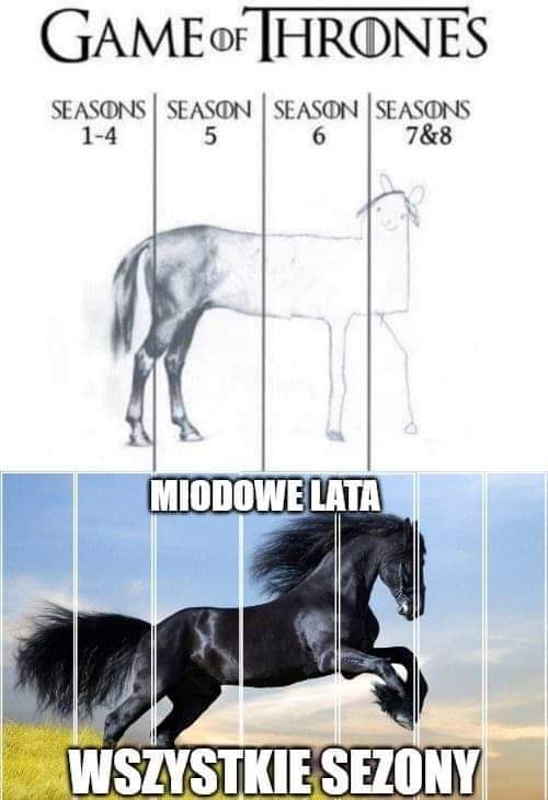 vako Opublikowano 13 Maja 2019 Zgłoś Udostępnij Opublikowano 13 Maja 2019 To może z innej beczki....GRRM mógłby łaskawie jednak podzielić się resztą serii z szerszą publiką. Że sezon poprzedni był zły, a ten jest jeszcze gorszy to raczej większość widzi... (chociaż o dziwo nie wszyscy, a nie rozumiem jak można tego spadku jakości nie wyłapać) i można tylko narzekać na kolejne sposoby niszczenia legendy serialu.Ma ktoś pozawikipedyjne info (wiki - In April 2019, Martin commented in an interview that the writing "has been going very well lately") na temat daty publikacji Wichrów Zimy? https://www.antyradio.pl/Film/Duperele/Aktor-z-Gry-o-tron-potwierdzil-ze-George-RR-Martin-skonczyl-prace-nad-dwiema-ostatnimi-czesciami-Piesni-lodu-i-ognia-31694 1 Cytuj Odnośnik do komentarza Udostępnij na innych stronach Więcej opcji udostępniania...