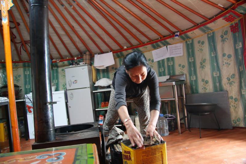 o znalazłem... jak kto ciekawy co ta Pani robi, to rozpala piecyk... czym odrobiną drewna i końską/krowią kupą...