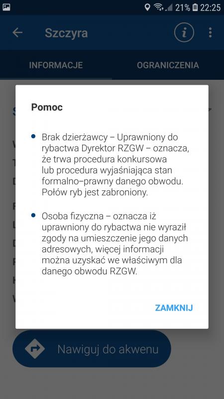 pajczi Opublikowano 3 Lipca 2019 Zgłoś Udostępnij Opublikowano 3 Lipca 2019 Tak jak koledzy piszą nie wolno łowić, bo nie ma użytkownika rybackiego.Ze swojej strony mogę polecić stronę zimorodek.pl, na której można sprawdzić status danej wody, w większości przypadków dane są aktualne:https://zimorodek.pl/akweny/szczyraklikając na miniaturkę można przejść do mapy i w sekcji OGRANICZENIA widać jakie są limity i wymiary lub że jest całkowity zakaz łowienia. Można też w łatwy sposób sprawdzić to w aplikacji mobilnej korzystając z wyszukiwarki lub z opcji zaawansowanej (suwaki w prawym górnym rogu), gdzie wpisując Brak użytkownika pokażą się wszystkie wody z zakazem. 1 Cytuj Odnośnik do komentarza Udostępnij na innych stronach Więcej opcji udostępniania...
