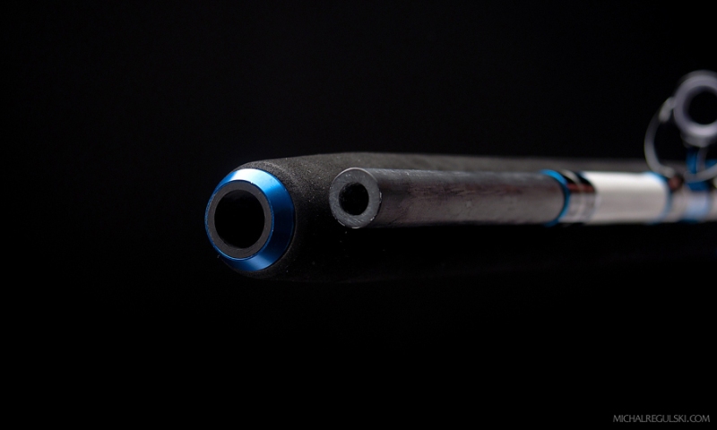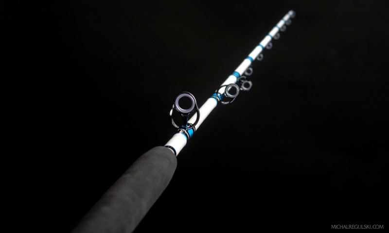 krzysiek Opublikowano 26 Marca 2012 Autor Zgłoś Udostępnij Opublikowano 26 Marca 2012 Drugi projekt: blank Tuna Popping 7’6” albo 9”(?) – muszę sprawdzić 100lb. Asymetryk, mało zbieżny, b. gruba ścianka, szczytówka prawie pełna. Materiał to niski moduł i szkło (chyba?). Kołowy. Zbrojenie spiralne 0/60/120/180, Hardloy, komplet przelotek to HN-ki. Masakryczne w lakierowaniu. Underwrap wyprowadzony poza właściwą omotkę. Nić wiodącą PW – D, metaliki też PW. Lakier Flex Coat HB dwie warstwy. Uchwyt i Gimbal to chyba American Tackle. Blank lakierowany akrylem, wygrzewany, zmatowiony papierem wodnym 800/1200. Cytuj Odnośnik do komentarza Udostępnij na innych stronach Więcej opcji udostępniania...