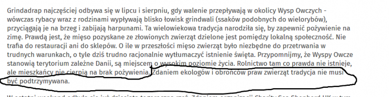 Skalaar Opublikowano 7 Sierpnia 2019 Zgłoś Udostępnij Opublikowano 7 Sierpnia 2019 (edytowane) A mi natomiast najbardziej utkwiło w pamięci i nie spodobalo sie:"odbyła się już dziesiąta tegoroczna rzeź. Zdaniem organizacji Charity Sea Shepherd UK w tym sezonie zabito 536 zwierząt (...) "Nie oszczędzono również samic grindwali, które były w ciąży. Z ich łona wycinano płody" Edytowane 7 Sierpnia 2019 przez Krzysiek P 2 Cytuj Odnośnik do komentarza Udostępnij na innych stronach Więcej opcji udostępniania...