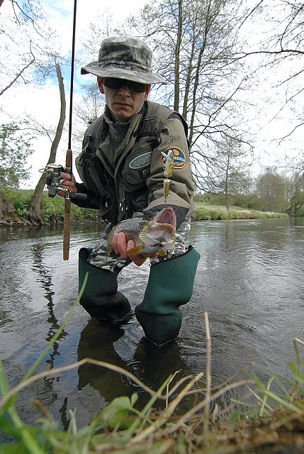 Ja złowiłem wczoraj podobnego rozmiarem.. Wędrówki po rzeczkach młodości ciąg dalszy - tym razem Radunia.. Lampa jak widać znów okrutna i ryby ukryte głęboko w zwałkach.. Ale Executor potrafi je wyciagnąć.. :D