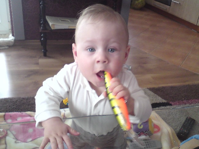 Mój synek ma 1,5 i codziennie domaga się czytania 'Wędkarstwa Rzecznego' Szymańskiego lub 'Sekretów Mistrzów Spiningu', a jak mu dzisiaj dałem kija potrzymać na sucho w domu, to nie chciał oddać.