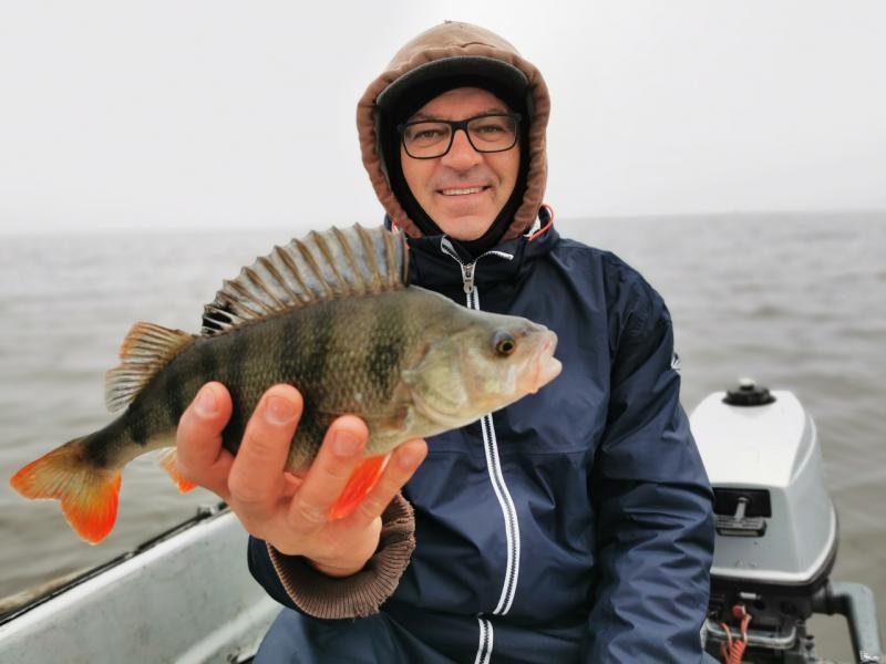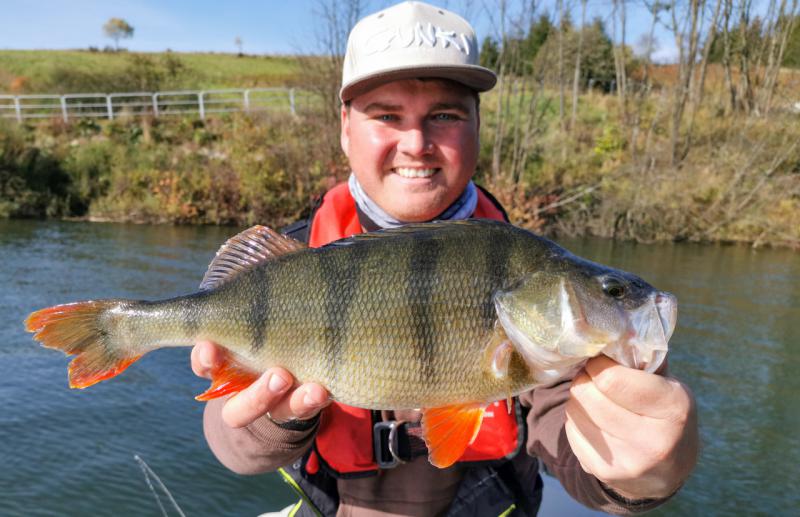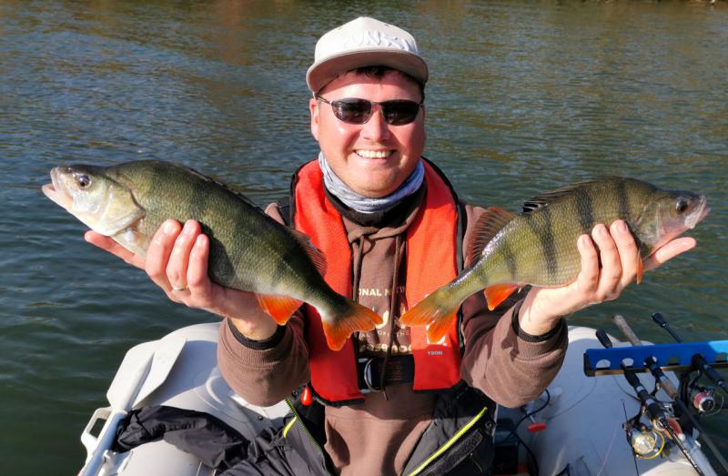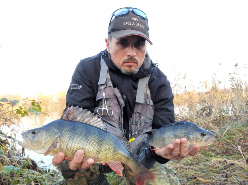 Adasiowa ryba , która walnęła na na blisko 10-cio centymetrową imitację okonka na 17 gramach i mniejszy amator równie ciężkiej kury .
