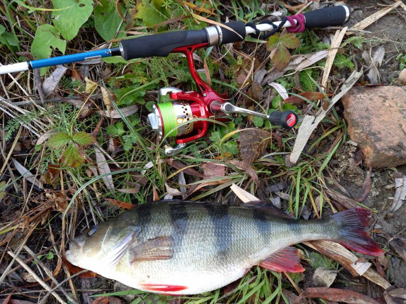 W końcu jakieś sensowne okonie na dropa. Godzina nad wodą i trafiłem idealnie tam gdzie stały. W sumie 6 sztuk, ale reszta mniejsze. Jeden w kilku dni wstecz. Co ciekawe trafił nam sie jeszcze leszcz i szczupak, praktycznie wszystko z opadających już grążeli, czyli nadal z płytkiej wody.
