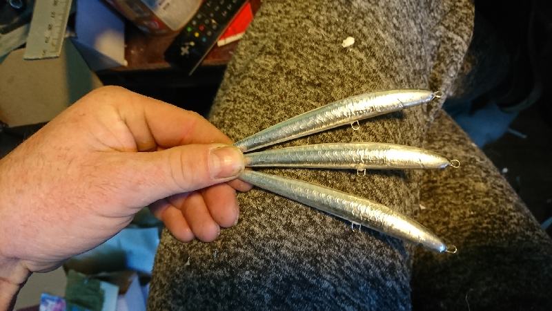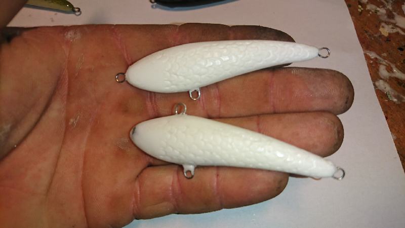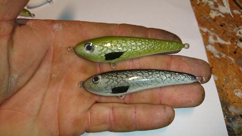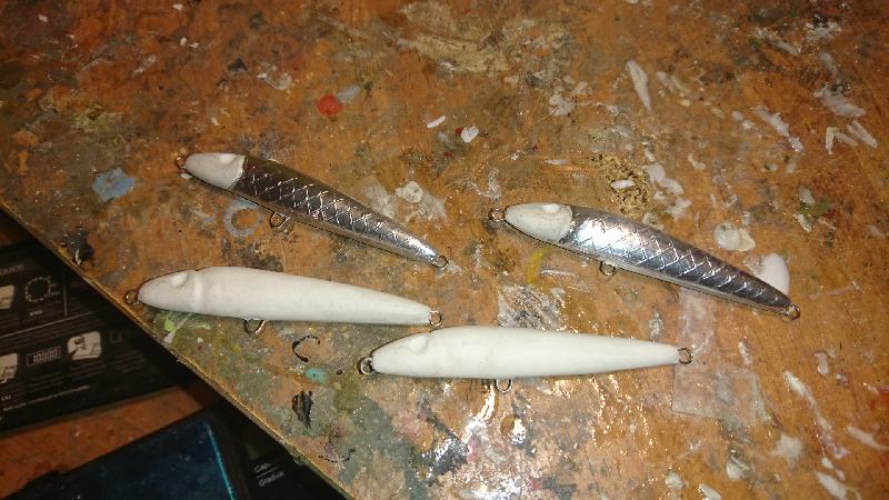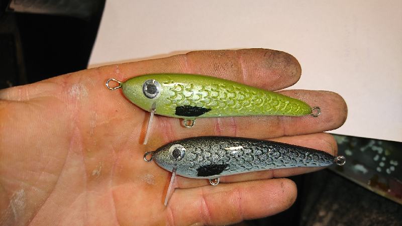 Tym razem coś pod czerwcowe sandacze Nowa forma i nowe odlewy. Narazie 3 sztuki Stelaż przez całość i różne obciążenie. I jedna sztuka bez obciążenia. Wszystkie pływające. Waga od 7 do 8,5 grama i 11 cm długości . Filmik z pracą po pomalowaniu na gotowo