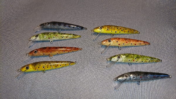 Klasyczne "siudemeczki" Malowanie bardziej pod sandacza lub bolenia i 1 pod pstrąga Na dole znalazła się jeszcze "piąteczka" o wadze ok 8 gr na dalekie klenie dla kolegi