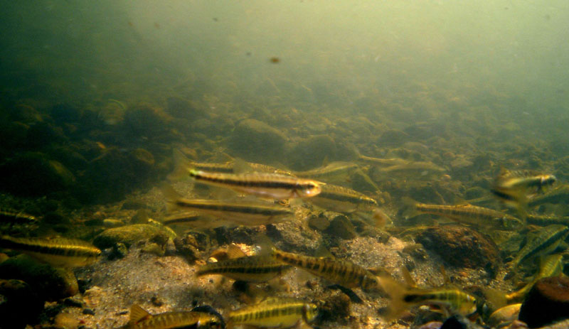 1. Jakie ryby (klenie ? pstragi ? black bassy ?) w formie mlodocianej (tak okolo 8-10 cm) maja bardzo wyrazny ciemny pasek na boku ciala ? Pasek przebiega wzdluz calego ciala od lba do nasady pletwy ogonowej? Rybki sa smukle.