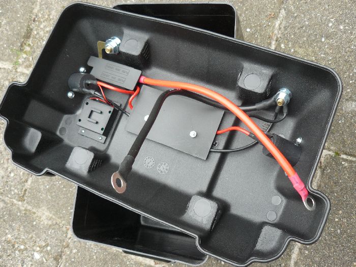 Polecam, mam taką na dyszlu. W niej właśnie taki akumulator i masa kabli z instalacji :)
