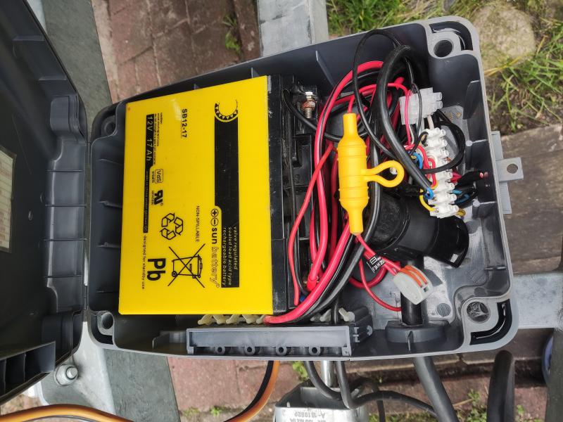 Ja mam na dyszlu metalową skrzynkę po amunicji. Kupisz ją w sklepach z militariami za ok. 40zł. Wchodzi akumulator 26ah. Zasilam z niego halogen do nocnego oświetlenia łodzi podczas slipowania lub jej wciągania na przyczepę oraz elektryczną wyciągarkę do łodzi. Dorobiłem tylko do niego zamykanie na kłódkę.c4dd244e77772986928586e459f345be.jpg