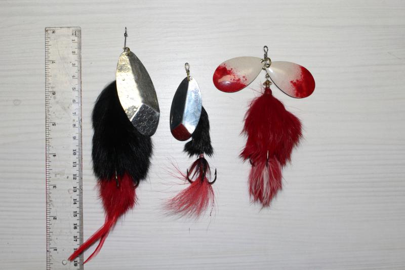 speku3 Opublikowano 5 Czerwca 2021 Autor Zgłoś Udostępnij Opublikowano 5 Czerwca 2021 Witajcie ponownie."Włochate" obrotówki tak mi się spodobały, że zrobiłem sobie jeszcze troszkę, te srebrne paletki w całości wykonałem ja Długość większego skrzydełka to 7 cm, cała obrotówka pierwsza z lewej ma 20 cm i ok 21 gram wagi. Tutaj taki mały projekt sum i szczupaczki późną jesienią tylko jakieś kolorki muszę jeszcze pomyśleć.Co do długości to mamy aż dwie wersje 6 cali i 38 gram oraz 8 cali i 98 gram.Pięknie wolno pracują nawet na małym obciążeniu. 3 Cytuj Odnośnik do komentarza Udostępnij na innych stronach Więcej opcji udostępniania...