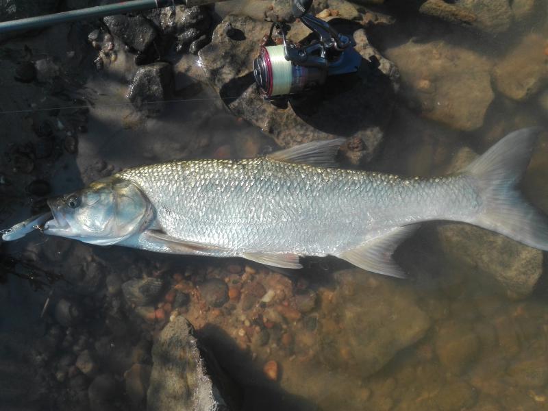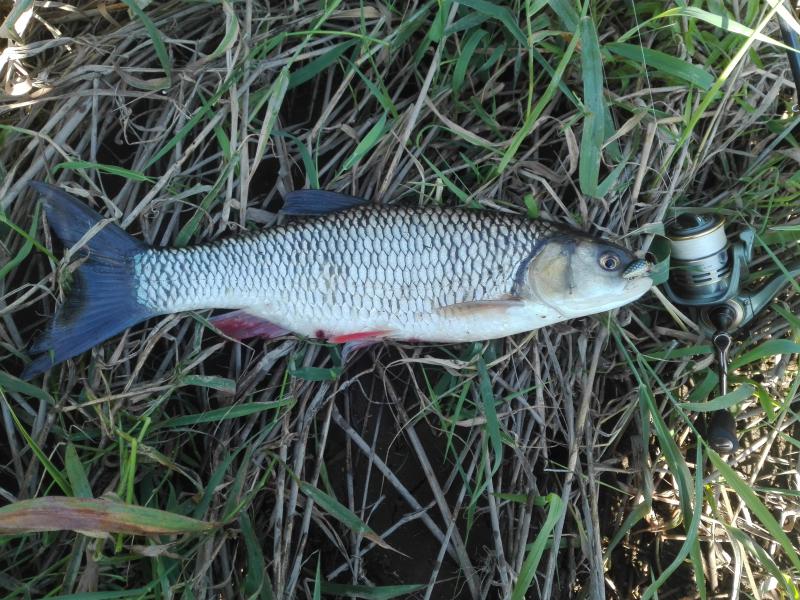 Wzdłuż brzegu polowały niewielkie bolenie. Zaliczyłem kilka wyjść a jeden spadł.