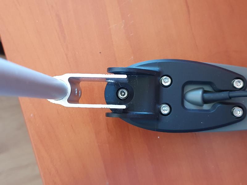 Witam wszystkich. Jako świeży posiadacz echo Garmina proszę o pomoc/poradę. Kupiłem najzwyklejszy uchwyt do przetwornika, ale okazało się, że szerokość elementów do mocowania samego urządzenia jest znacznie większa niż szerokość w uchwycie (na zdjęciu). Na tyle duża, że żadne podkładki nie zdają egzaminu. Jakie zastosowaliście rozwiązania, bo jak się domyślam, raczej mniejszość montuje przetwornik do pawęży.