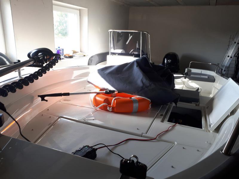 Ale naprawdę nie mam uwag do Pegazusa, a osoby które goszczę na łodzi, też wędkarsko, wyrażają swoje pochlebne opinie chyba nie tylko z grzeczności. Przepraszam za bałagan na zdjęciu bo pstryknąłem biegnąc do samochodu, ale z drugiej strony, te przedmioty pokazują skalę tego pokładu...  przy szerokości prawie 2m czujesz się bezpiecznie a łódź nie reaguje też na wariactwa dwójki chłopaków w wieku 6 i 10 lat... ;)