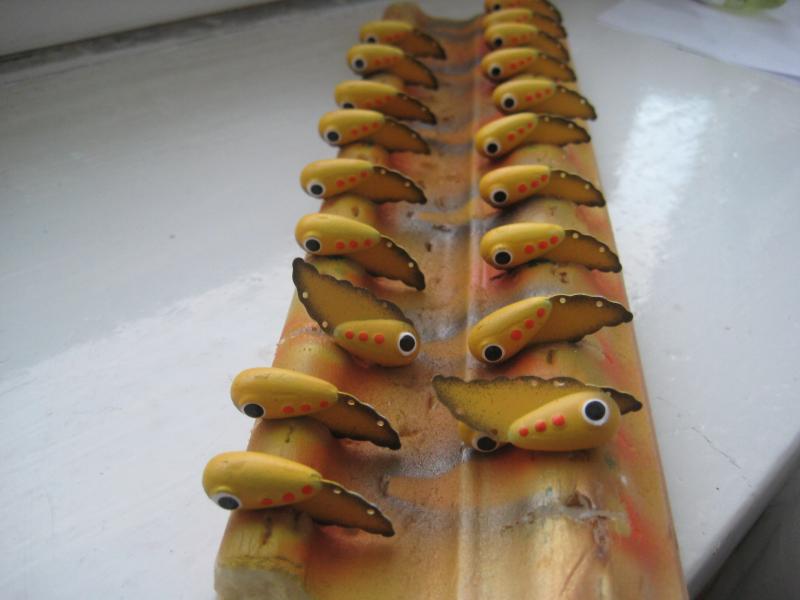 Kielo Opublikowano 4 Stycznia 2018 Autor Zgłoś Udostępnij Opublikowano 4 Stycznia 2018 Nie mam czasu niestety więc na szybko robię sobie ,bez zachowania szczegółów wyglądu zewnętrznego danego gatunku ,skupiam się bardziej na zachowaniu wyznaczonych odcieni barw i akcentów.Wobler tonący nie lekko tonący tylko tonący :-) ,głową w dół ,mi posłuży w 80% do łowienia po łuku z przeciwległej burty ,ma zejść szybko na jakieś 1,5 metra i tam sobie penetrować rynienkę lub dziurkę hahah:-). 2 Cytuj Odnośnik do komentarza Udostępnij na innych stronach Więcej opcji udostępniania...