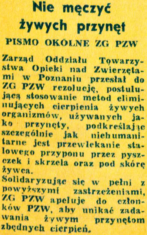 S. Cios Opublikowano 6 Stycznia 2022 Autor Zgłoś Udostępnij Opublikowano 6 Stycznia 2022 WW 1968 nr 1. Bodajże pierwsza jaskółka w Polsce, sygnalizująca konieczność odejścia od niehumanitarnego traktowania zwierząt w Polsce przez wędkarzy. Zwraca uwagę pozytywne podejście ze strony PZW. Przypomnę, że Rozporządzenie z listopada 2001 r. wprowadziło zakaz połowu przy użyciu żywca, ale pod naporem presji społecznej już w styczniu 2003 r. wycofano ten przepis. W RAPR był natomiast galimatias w tym względzie. Stosunek do stosowania żywca jako przynęty jest miernikiem rozwoju cywilizacyjnego społeczeństwa. 4 Cytuj Odnośnik do komentarza Udostępnij na innych stronach Więcej opcji udostępniania...