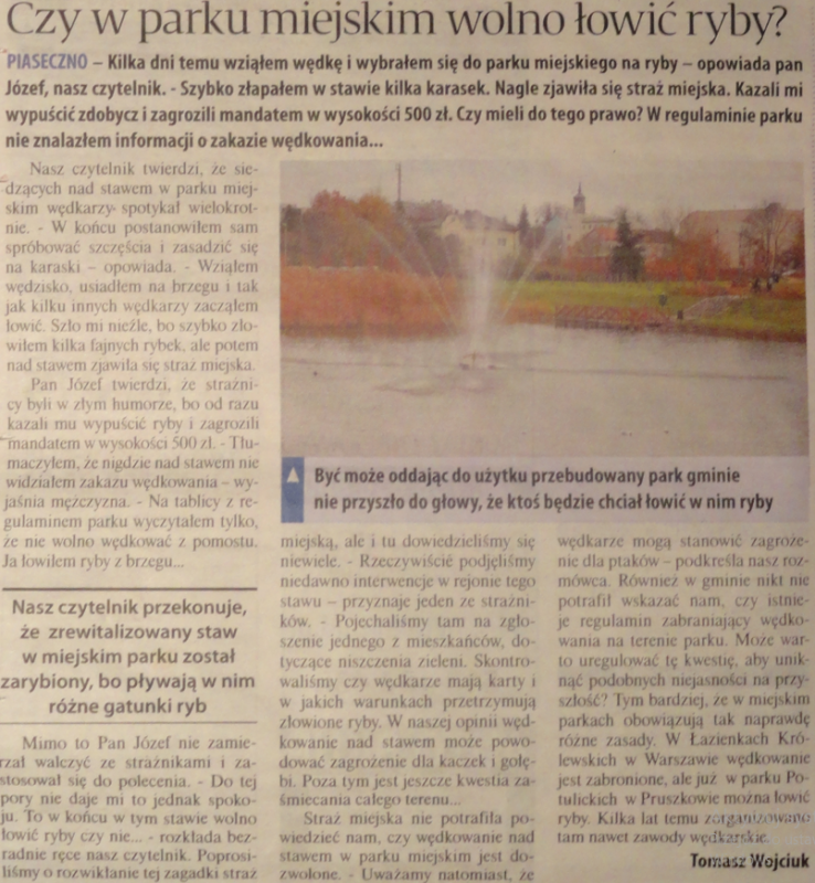 S. Cios Opublikowano 9 Listopada 2021 Autor Zgłoś Udostępnij Opublikowano 9 Listopada 2021 Kurier Południowy (Ursynów i Piaseczno), nr 40 z 4-18 XI 2021, przypadkiem zabrany podczas wizyty w przychodni. Może to nie historia, ale ta historia o zagrożeniu wędkarzy dla kaczek to może przejść do historii. Rozumiem, że myśliwi mogą być zagrożeniem, ale wędkarze!? Cytuj Odnośnik do komentarza Udostępnij na innych stronach Więcej opcji udostępniania...