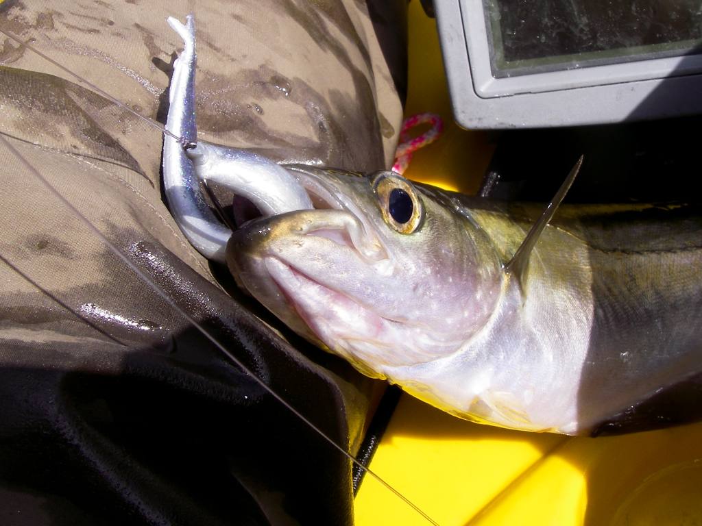 Kuba Standera Opublikowano 29 Czerwca 2012 Autor Zgłoś Udostępnij Opublikowano 29 Czerwca 2012 Wysoką wodę mam mieć ok 16.30, więc gdy zrzucam kajak ok 14, mam fuksa i łowię w teoretycznie najlepszym momencie – przez 2h przed wysoką wodą. Pogoda – jak nie w Irlandii. Piękne i bardzo ostre słońce (można się mocno poparzyć), bardzo lekki wiatr – kilkanaście km/h, akurat, żeby nie było za gorąco. Nie wypływam zbyt daleko – wszak z kajakiem to ciągle świeża sprawa – tak 200-300m, by odejść poza zasięg łowiących ze skałek na brzegu. Rzucam kotwicę, przepinam linkę na rufę i wio – łowimy. Wędka ta co wczoraj – pożyczony od Ramaya morski travel. Wiążę do linki krętlik, do niego zestaw ze skoczkiem na bardzo grubej, odpornej i na przetarcia i na splątania żyłce. Na trok 2oz ciężarek, na haczyk sandeel Gulp! I wio – łowimy. . Cytuj Odnośnik do komentarza Udostępnij na innych stronach Więcej opcji udostępniania...