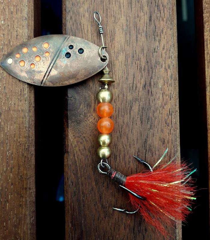 Ryba 105 cm złowiona na żwirowni, węda SG4 (cast) 12-32 gr, młynek shimano curado DC, pleciona power pro 20lb a przynęta to obrotówka mojego wykonania (na zdjęciu poniżej)
