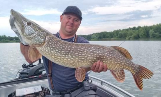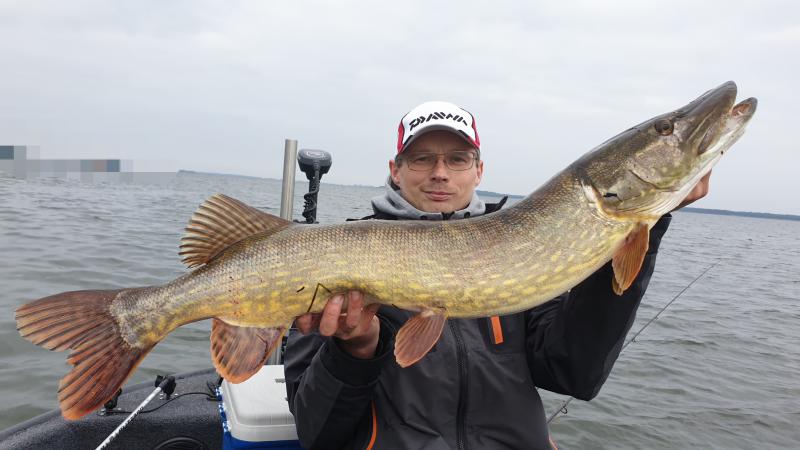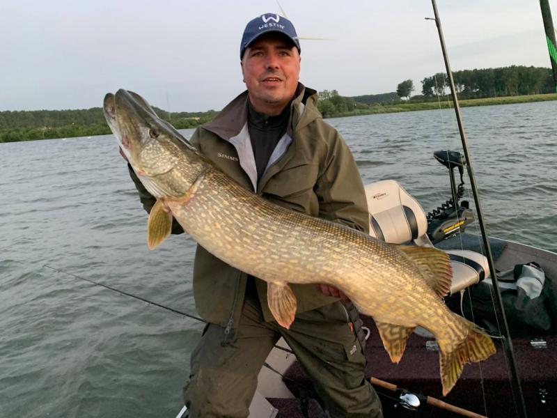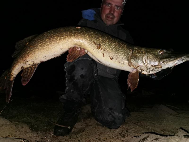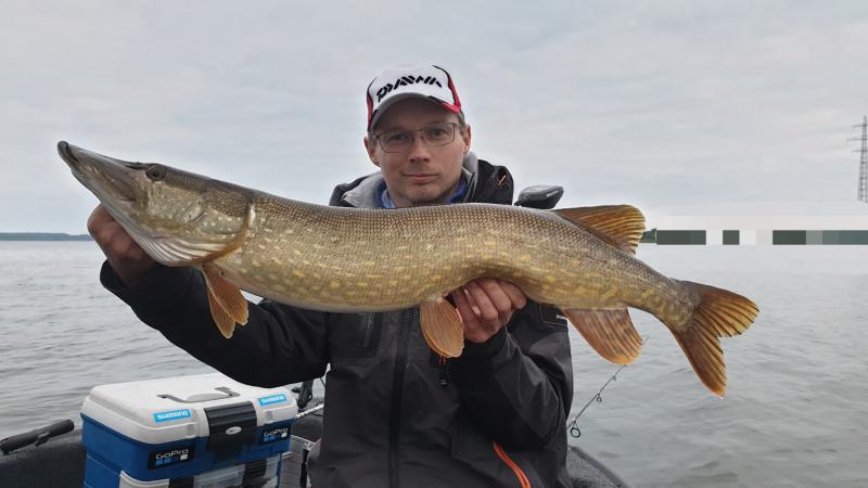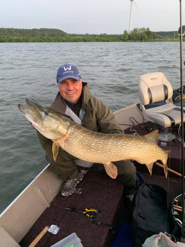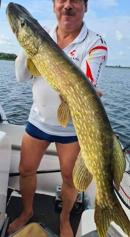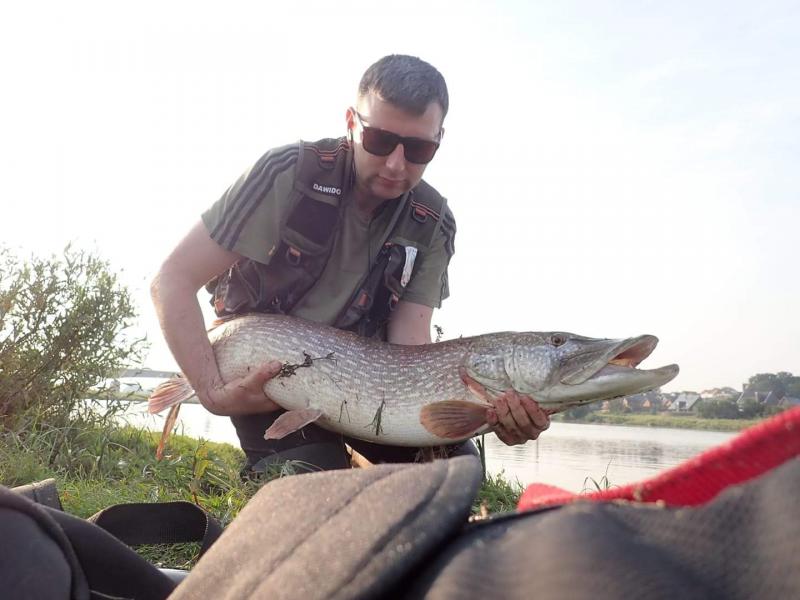 102 cm, życiowka poprawiona o 1 cm. Ryba wzięła na salmo pike 16 kilka metrów od trzcin na wodzie ok 2m mocno zarosnietej rdestnicą, branie po dalekim wyrzucie pod trzciny i kilku obrotach korbką. W zacieciu i holu wspomagał mnie hm69 wobler i slammer 360 z plecionka 0.20.