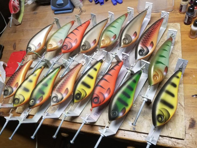 Julas Opublikowano 13 Kwietnia 2021 Autor Zgłoś Udostępnij Opublikowano 13 Kwietnia 2021 Witam! Mały update tematu. Jestem po pierwszym malowaniu przynęt na których zastosowałem Propionat. Na pierwszy ogień poszły Jerki. Z racji swojej znacznej powierzchni uznałem że będą najlepsze do testów.Może zacznę od instrukcji jaką otrzymałem od osoby od której kupiłem specyfik. Mieszanie 100g granulatu na 1litr acetonu ( przetrzymywać w pojemniku szczelnym odpornym na aceton ). Propionat rozpuszcza się w acetonie w przeciągu około doby przy czym mieszanie znacznie przyspiesza proces ja mieszałem go od czasu do czasu powiedzmy co godzinę. Następnego dnia jeszcze go nie używałem dałem mu się jeszcze przegryźć i przemieszałem parę razy w ciągu dnia. Szczelny słoik na konfiturkę. Pojemność 3,7 litra Gotowy propionat powinien mieć konsystencje słodkiej śmietanki do kawy. Z powyższych proporcji otrzymałem raczej mleko i uznałem, że dodam trochę granulatu uzyskując gęstszą mieszaninę. Gdy mieszanina jest gotowa można przystąpić do gruntowania. Warto zawsze przemieszać przed namoczeniem. Pierwsze zanurzenie trwa ok. 30 minut do godziny aczkolwiek zależne to jest od rodzaju drewna z jakiego wykonujemy korpus, np. balsa ma w sobie dużo powietrza więc potrzebuje więcej czasu wielkość też nie będzie bez znaczenia zaleca się aby moczyły się do czasu ustania gazowania korpusu ( bąbli wydostających się na powierzchnię ).Dla lepszej penetracji drewna można zastosować rzadszy propionat do pierwszego namoczenia. Kolejne zanurzenia wykonujemy już szybkim ruchem każde kolejne powtarzamy minimum co godzinę aby dobrze wyschły. Generalnie po około półgodzinie jest już w miarę twardy także schnie szybko. Kontynuujemy do momentu uzyskania pożądanej powierzchni ( 6 – 10 warstw ) Po kilku zanurzeniach można obrócić korpus do góry nogami dla równomiernego rozprowadzenia ale ja się w to nie bawiłem. Tak wygląda korpus po 3 warstwach Pomiędzy zamoczeniami mogą powstać drobniutkie pęcherzyki powietrza które łatwo można przeszlifować papierem 800. Po ostatniej warstwie można odwiesić korpusy w pomieszczeniu o temperaturze pokojowej do utwardzenia na około dobę. W pełni zagruntowany korpus Przed samym malowaniem lepiej zmatowić powierzchnie drobniutkim papierem np. 800 ponieważ propionat jest błyszczący i śliski więc przyczepność farb będzie raczej słaba. Plastik ładnie się obrabia, lekko szlifuje a podczas oczyszczania oczek nożykiem nie odpryskuje jest raczej elastyczny niż kruchy. A w zapachu przypomina ten ze sklepu obuwniczego mieszanka gumy, skóry i plastiku. Surowy i zmatowiony propionat obok dla porównania. Jedna rzecz o której należy pamiętać to wybór klejów które tolerują aceton. Malowanie poszło gładko bez rozmywania kolorów. Farba ładnie się trzyma, podczas nakładania żywicy pędzlem nie powstały żadne rysy czy rozmycia. Mam w zwyczaju nakładanie podkładu vallejo tak też było w tym przypadku. Dziękuję za uwagę i zapraszam do zadawania pytań. 4 Cytuj Odnośnik do komentarza Udostępnij na innych stronach Więcej opcji udostępniania...