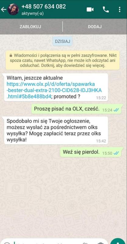 Małkociniak Opublikowano 15 Kwietnia 2021 Zgłoś Udostępnij Opublikowano 15 Kwietnia 2021 (edytowane) Na FB publikowałem poradnik jak sprzedawać na OLX za pośrednictwem whatsApp Przy okazji prezentuję nr. telefonu potencjalnego złodzieja. Edytowane 15 Kwietnia 2021 przez Małkociniak 7 Cytuj Odnośnik do komentarza Udostępnij na innych stronach Więcej opcji udostępniania...
